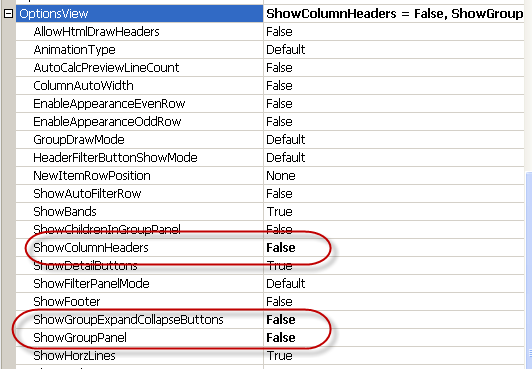 完成上面的绑定关系后,记得设置GridView控件的属性,使其不要显示原本的ColumnHeader等内容。